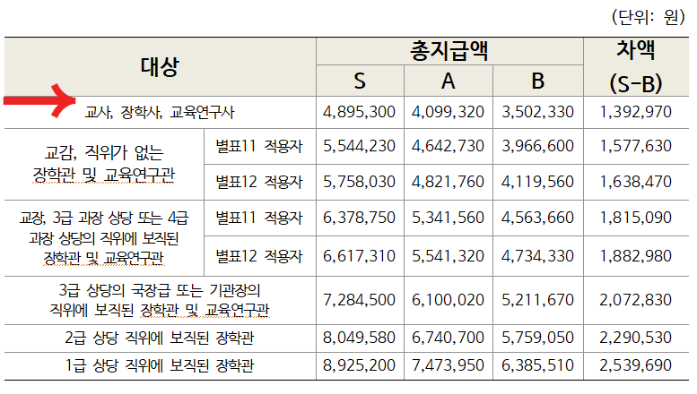 성과급 차등지급률은 교사에 따라 차이가 있을 수 있으므로 참고 바랍니다.