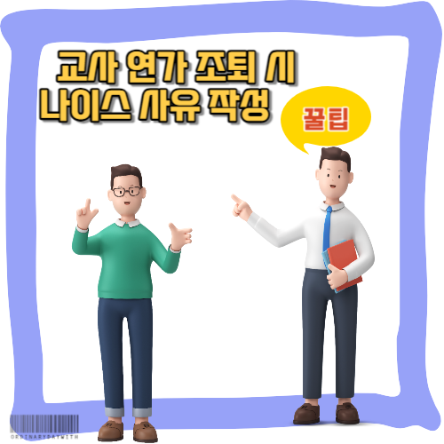 지금까지 교사 연가 일수 및 나이스 복무 상신 시 조퇴 사유에 개인 용무 대신 작성 할 수 있는 교사 조퇴 사유 예시를 정리해 봤습니다.