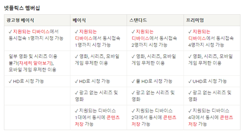 기존 넷플릭스 멤버십과 요금제는?