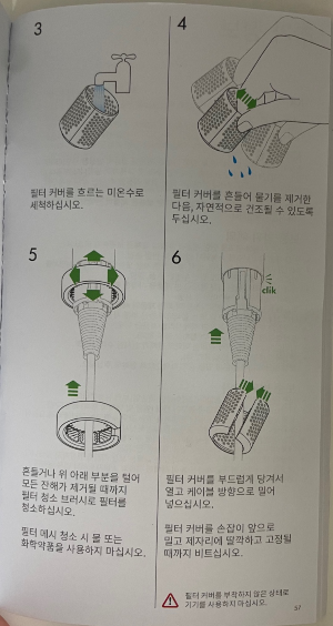 청소를 찾아서 주기적으로 하는 분들이 아니라면 드라이기 소리가 부실하다, 머리가 잘 안 말려진다, 컬이 잘 안말린다, 필터 커버 위 LED 등이 깜빡거리면 그때는 꼭 필터 청소를 해서 잔여물을 정리해 주시면 됩니다.