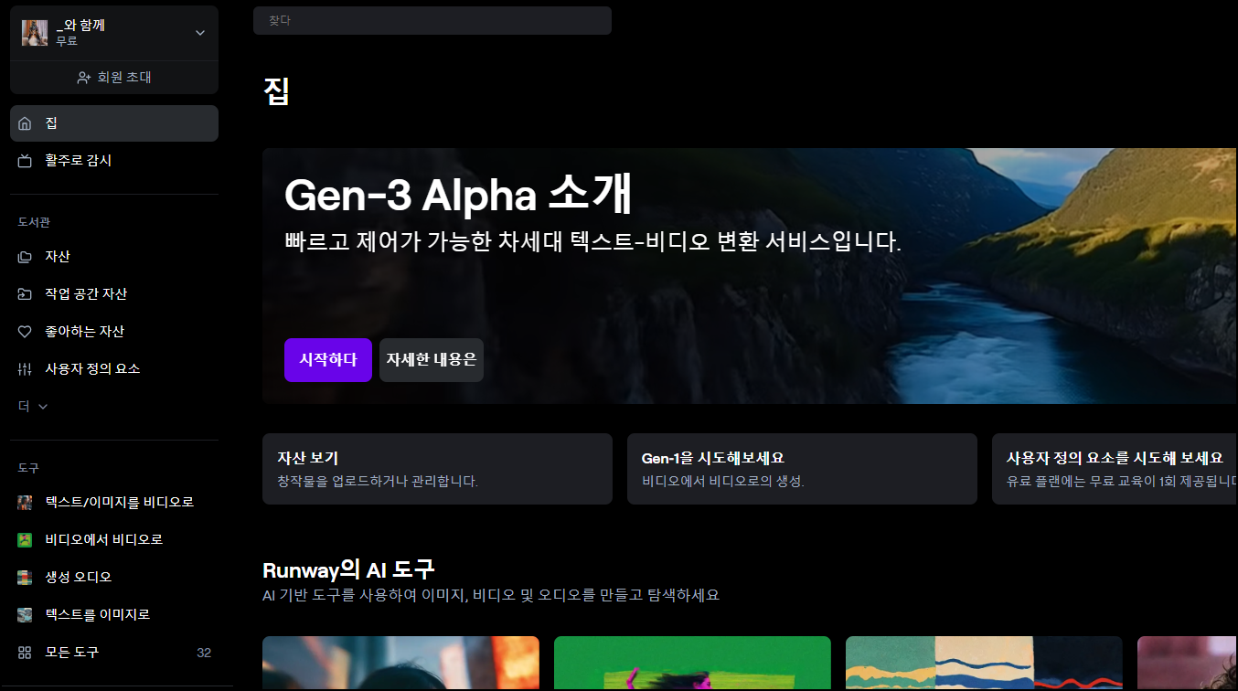 1️⃣ 런웨이 ai - 회원가입 - 로그인 (무료 사용 가능)