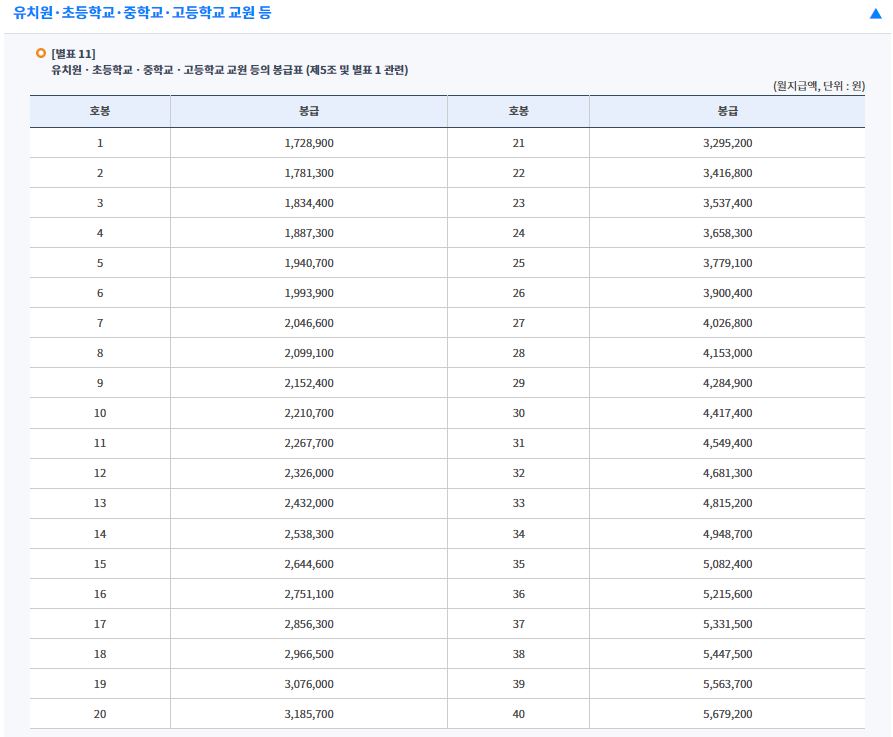 <참고> 2023 교원 호봉에 따른 봉급표(월급) #2023교사봉급표 #2023교사월급표