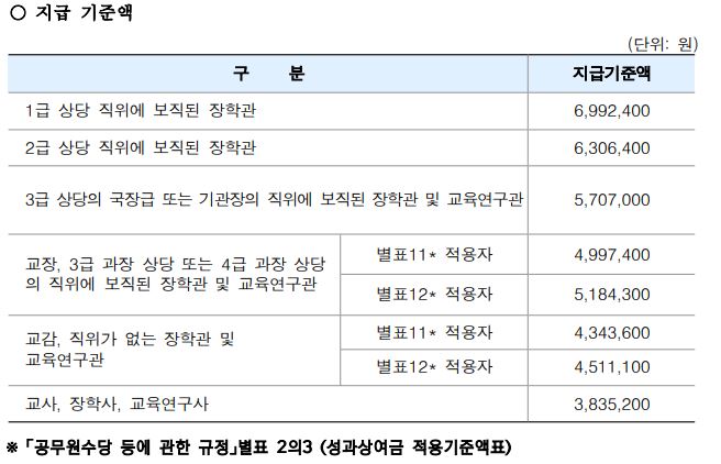 - 지급 대상자: 지급기준일 기준(2023. 2. 28.) 현재 해당 기관에 소속되어 있으며, 평가 대상 기간 중 퇴직한 교육, 교육전문직원을 대상으로 합니다.